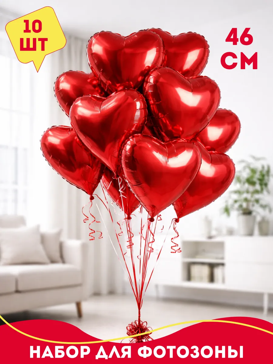 Набор: фольгированные сердца красные 46 см 10 шт. Яркие и разноцветные однотонные шарики на др превосходно подойдут для декорирования и украшения помещения на любое торжество или праздник. Воздушные шарики и аксессуары - это отличный подарок для мальчика и для девочки, набор для дня рождения или как подарки в детский сад. Шары - отличный подарочный набор папе или маме на день рождения. Плотные латексные шары идеально подходят для надувания как гелием (специальный газ для шаров), с помощью баллона, так и обычным воздухом с помощью насоса для шаров или без использования дополнительных средств. Шарами можно украсить фотозону на день рождения, Новый год, 1 сентября, последний звонок, выпускной в садике и школе, 23 февраля, день святого Валентина, выписку из роддома, вечеринку, любой другой праздник или юбилей. Сделать арку на свадьбу для молодоженов или украсить детский праздник. Можно использовать как подарки женщинам для праздника 8 марта или как набор на день рождения подруге или другу, брату или сестре, мужу или жене. Шарики принесут массу положительных эмоций как детям, так и взрослым, создадут праздничное настроение и станут примечательным атрибутом торжества. Шарики изготовлены из плотного натурального латекса, не лопаются, не имеют запаха и хорошо раздуваются. Абсолютно гипоаллергенны и безопасны как для взрослых, так и для детей. Набор шариков станет отличным сюрпризом для поздравления с Днем Рождения (Happy Birthday) или просто как сюрприз без повода. Шары поставляются в не надутом виде. Также в дополнение к шарам рекомендуем приобрести товары для праздника. Упаковка воздушных шаров изготовлена из полиэтилена. Заходите в наш магазин Happy Fiesta, у нас много различных шаров на любой вкус и проходят распродажи, акции, скидки! Переходите в личный кабинет и добавляйте наш бренд в избранное, чтобы не пропустить новинки!