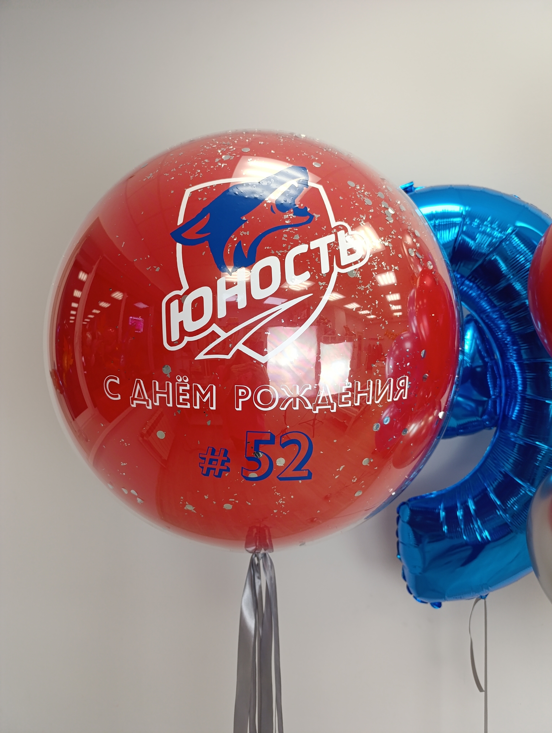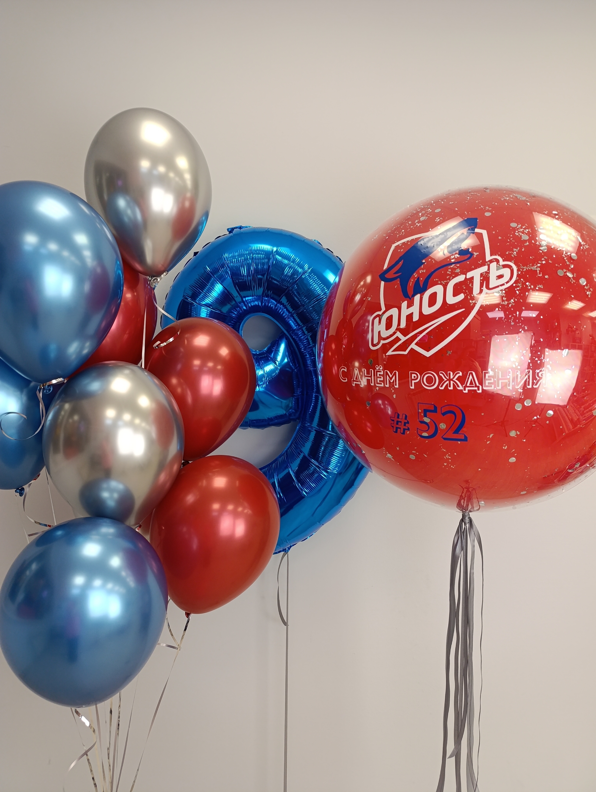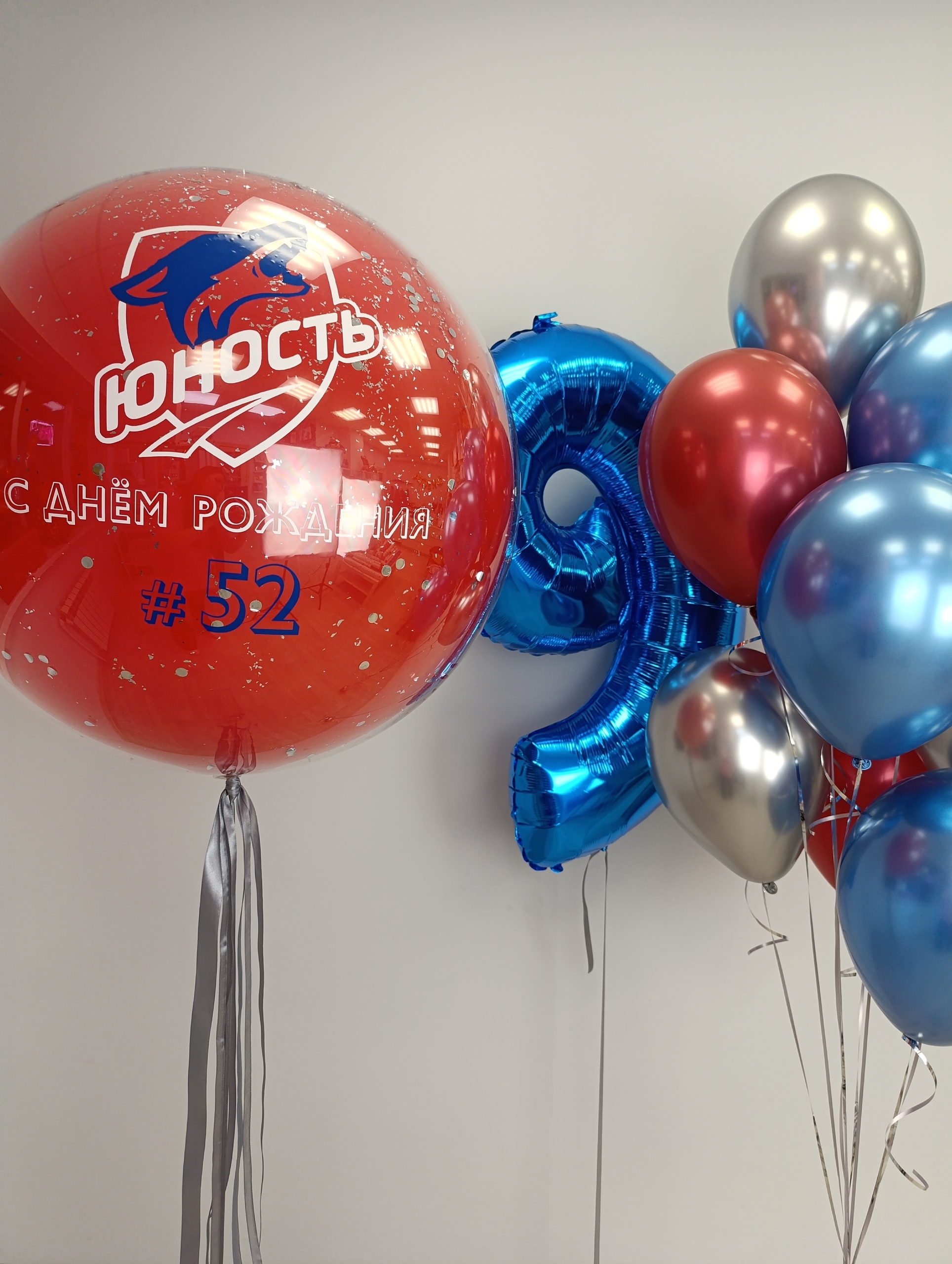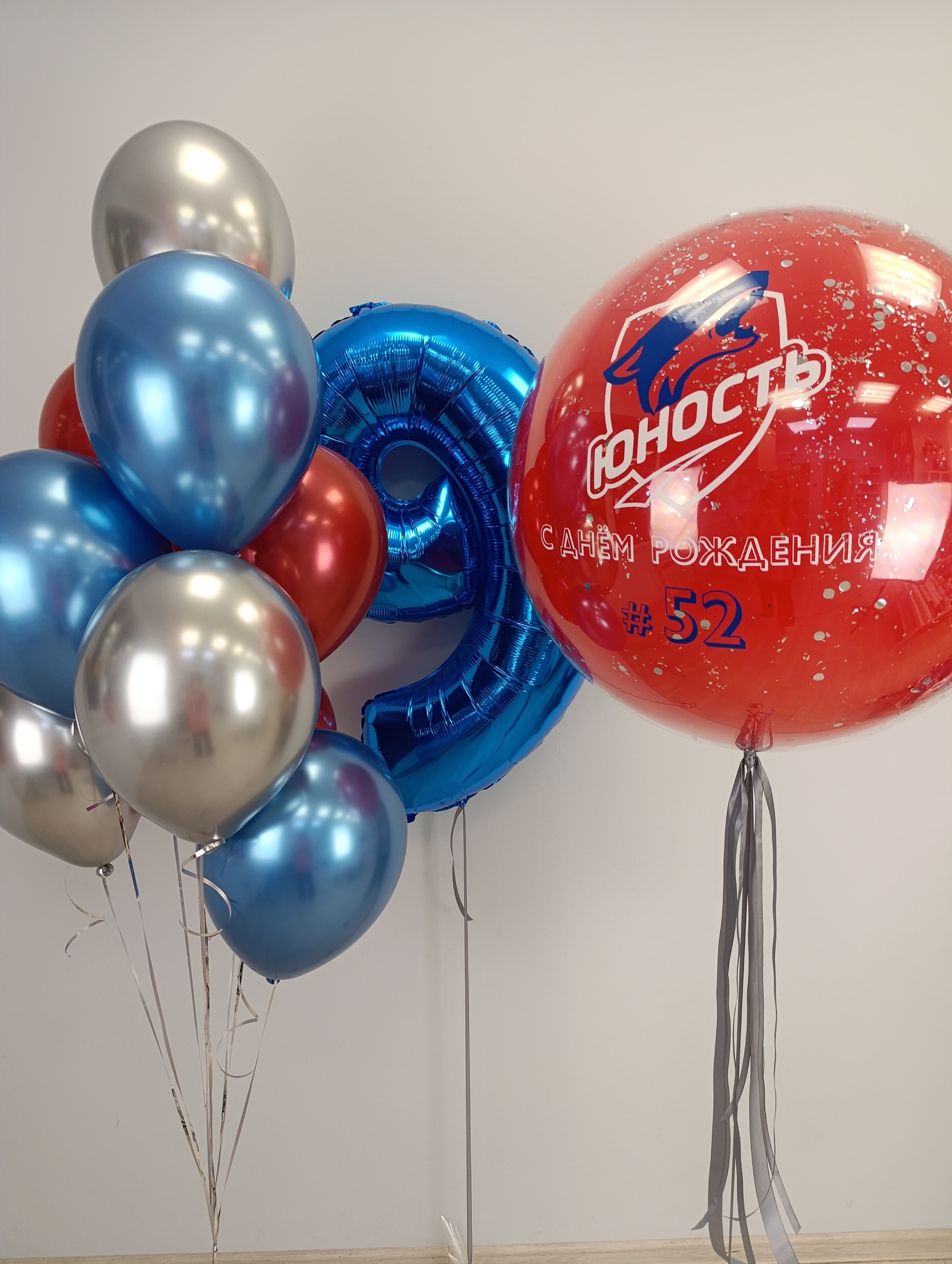 В составе набора: Большой "стеклянный" гигант с надписью Большая цифра Фонтан из 9 шаров хром