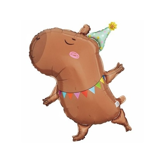 Фольгированная фигура Размер шара - 31''/79 см Фигура Капибара в колпачке надута гелием, на грузе, на ленте