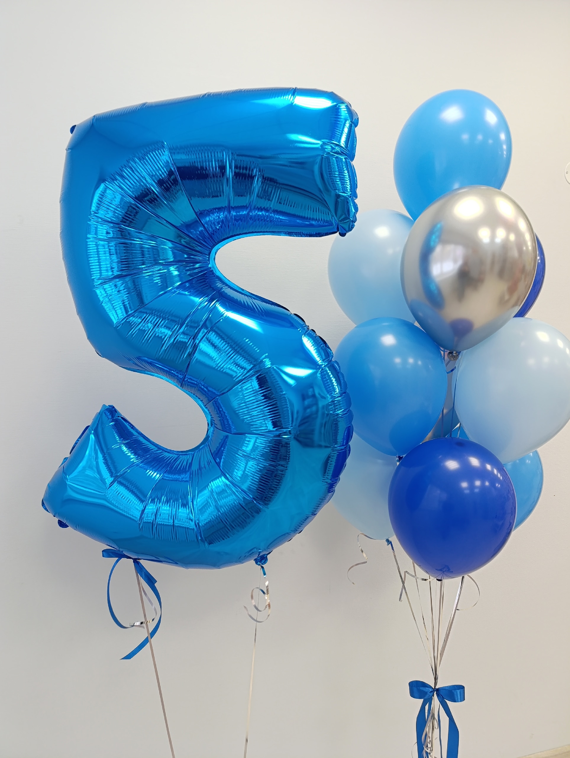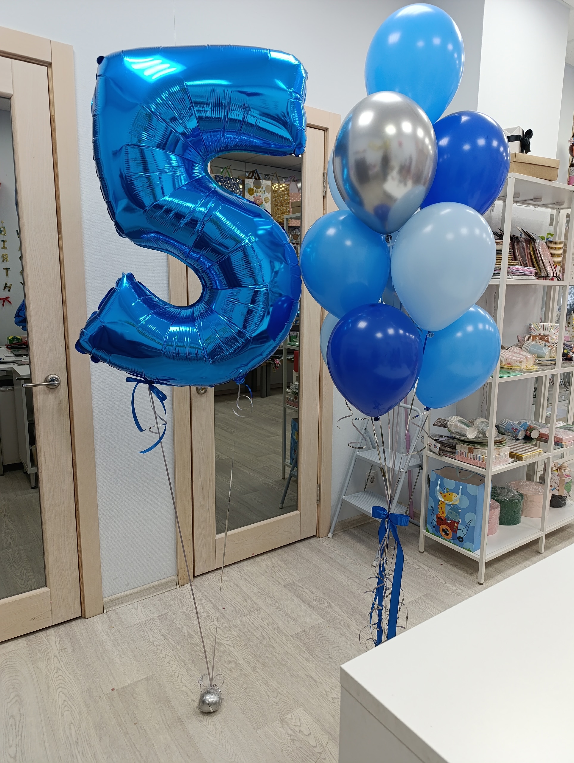 Большая цифра Фонтан из 10 шаров - 3 шара хром, 7 шаров стандарт