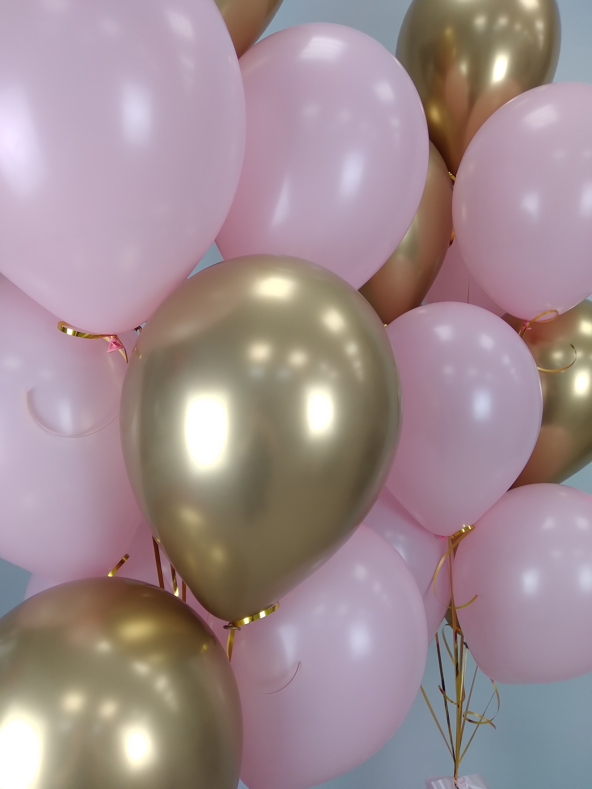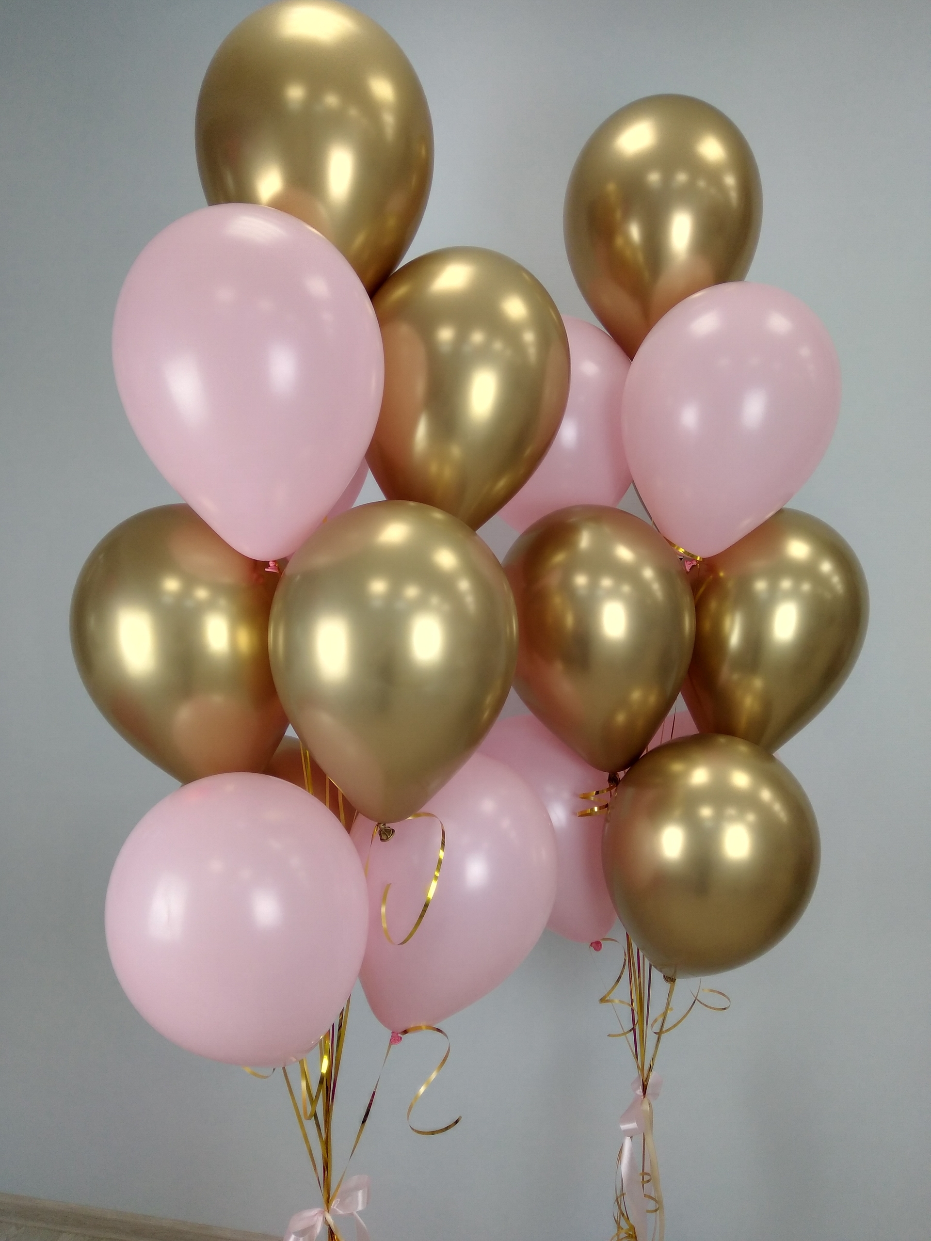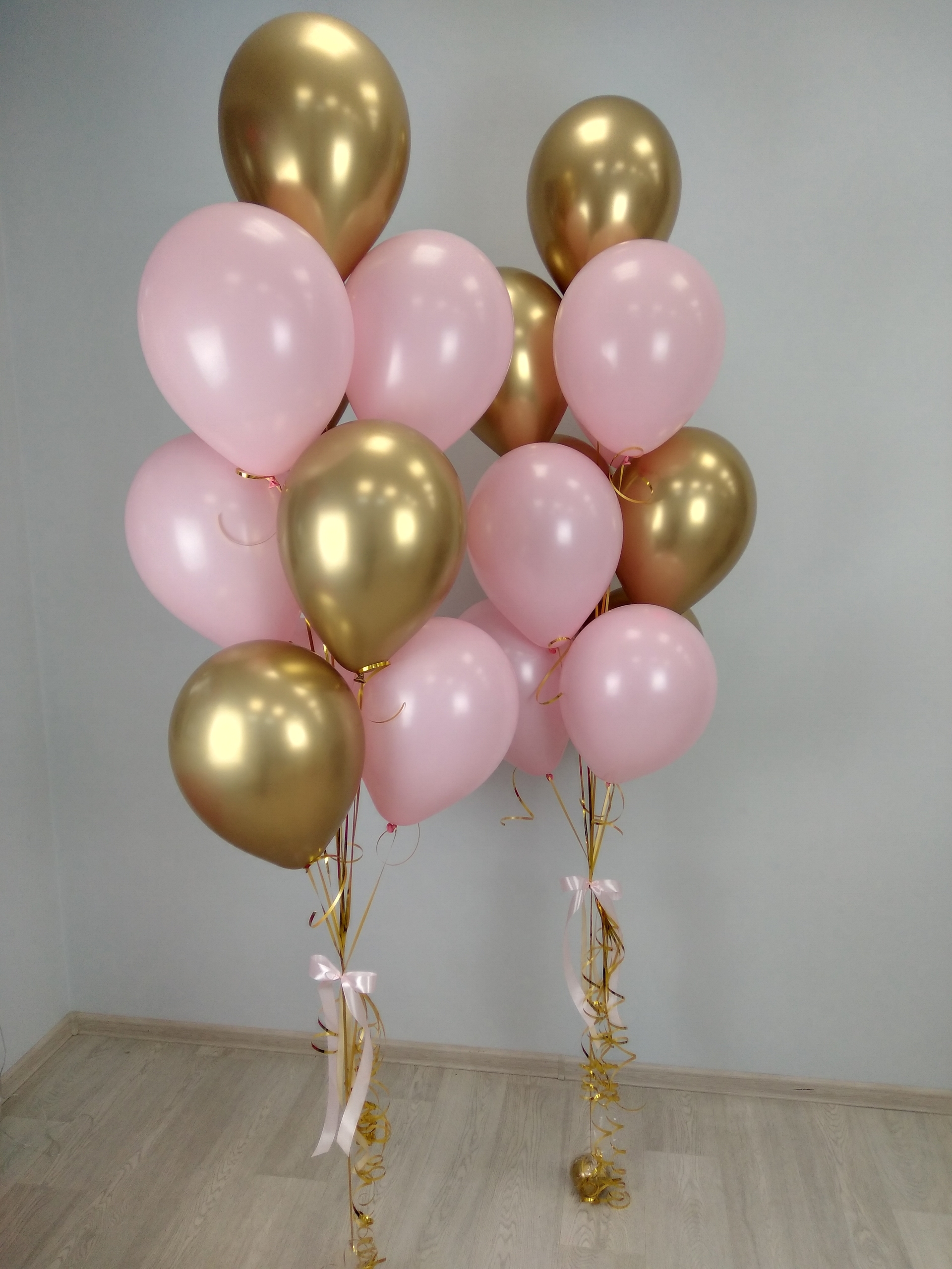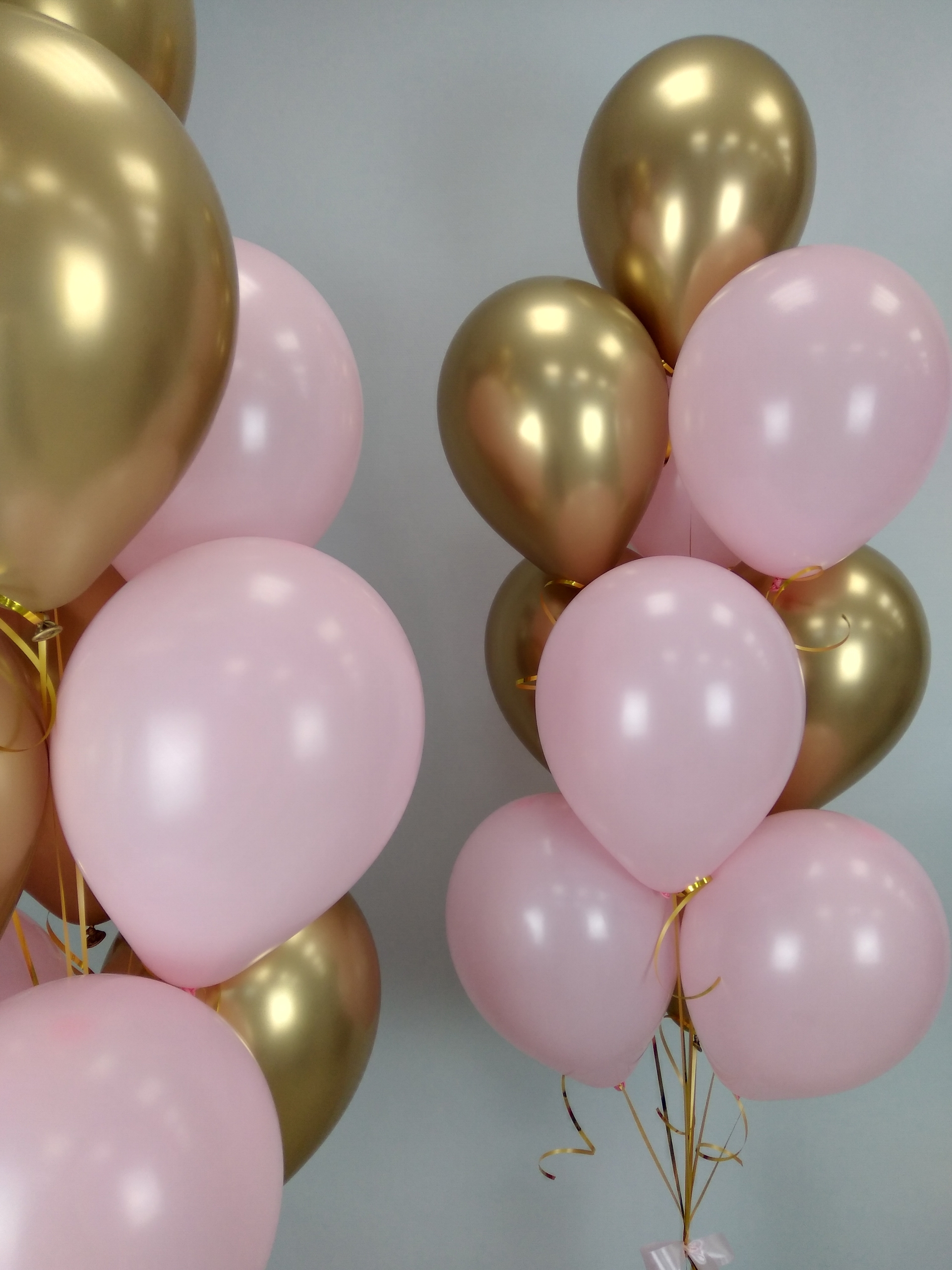 Набор из 2-х композиций по 10 шаров, в каждой композиции 5 шаров золото хром и 5 розовых