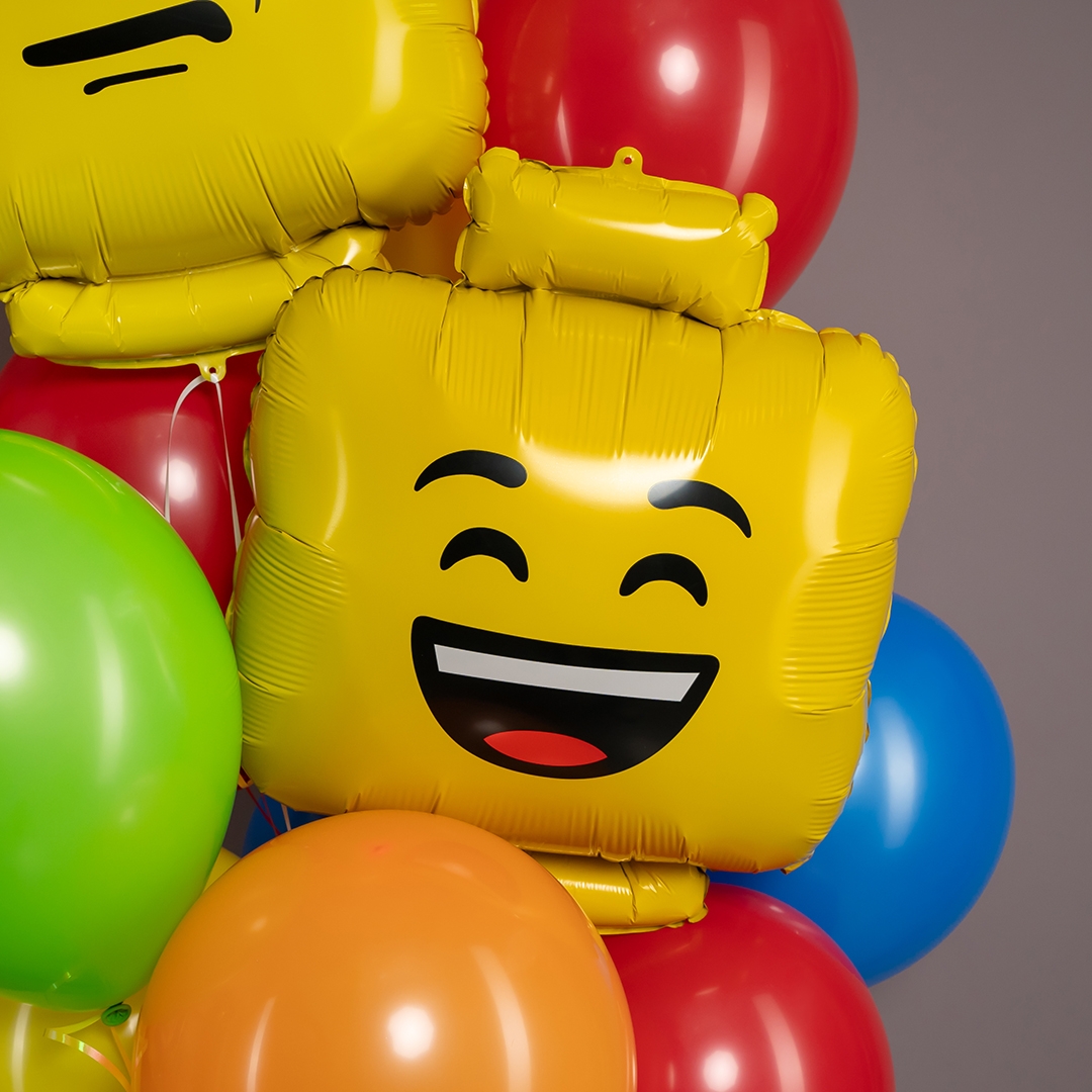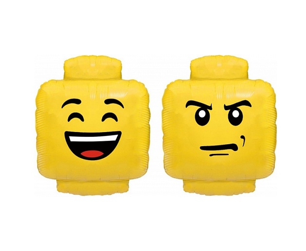 Фольгированная фигура Голова Лего конструктор Шар имеет разные изображения с 2-х сторон Надут гелием Размер 50 см