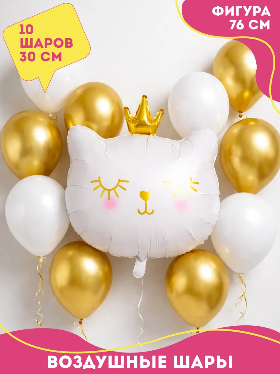 Набор воздушных шаров Котенок принцесса белый 76 см. Прекрасно подойдет для оформления любого детского праздника или фотозоны. Шарики для детей - непременный атрибут каждого праздника! Яркие и разноцветные однотонные шарики на др превосходно подойдут для декорирования и украшения помещения на любое торжество. Воздушные шарики и аксессуары - это отличный подарок для мальчика и для девочки, набор для дня рождения или как подарки в детский сад. Шары - отличный подарочный набор папе или маме на день рождения. Плотные латексные шары идеально подходят для надувания как гелием (специальный газ для шаров), с помощью баллона, так и обычным воздухом с помощью насоса для шаров или без использования дополнительных средств. Можно украсить фотозону на день рождения, Новый год, 1 сентября, последний звонок, выпускной в садике и школе, 23 февраля, день святого Валентина, выписку из роддома, вечеринку, любой другой праздник или юбилей. Сделать арку на свадьбу для молодоженов или украсить детский праздник. Можно использовать как подарки женщинам для праздника 8 марта или как набор на день рождения подруге или другу, брату или сестре, мужу или жене. Шарики принесут массу положительных эмоций как детям, так и взрослым, создадут праздничное настроение и станут примечательным атрибутом торжества. Изготовлены из плотного натурального латекса, не лопаются, не имеют запаха и хорошо раздуваются. Абсолютно гипоаллергенны и безопасны как для взрослых, так и для детей. Набор шариков станет отличным сюрпризом для поздравления с Днем Рождения (Happy Birthday) или просто как сюрприз без повода. Поставляются в не надутом виде. Также в дополнение к шарам рекомендуем приобрести товары для праздника. Упаковка воздушных шаров изготовлена из полиэтилена. Заходите в наш магазин Happy Fiesta, у нас много различных шаров на любой вкус и проходят распродажи, акции, скидки! Переходите в личный кабинет и добавляйте наш бренд в избранное, чтобы не пропустить новинки!