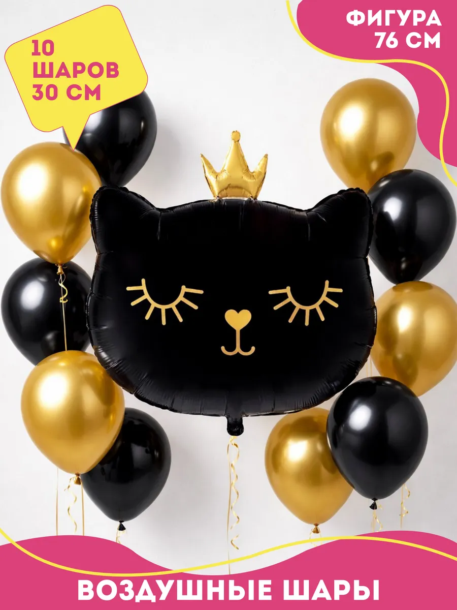 Набор воздушных шаров Котенок принцесса черный 76 см. Прекрасно подойдет для оформления любого детского праздника или фотозоны. Шарики для детей - непременный атрибут каждого праздника! Яркие и разноцветные однотонные шарики на др превосходно подойдут для декорирования и украшения помещения на любое торжество. Воздушные шарики и аксессуары - это отличный подарок для мальчика и для девочки, набор для дня рождения или как подарки в детский сад. Шары - отличный подарочный набор папе или маме на день рождения. Плотные латексные шары идеально подходят для надувания как гелием (специальный газ для шаров), с помощью баллона, так и обычным воздухом с помощью насоса для шаров или без использования дополнительных средств. Можно украсить фотозону на день рождения, Новый год, 1 сентября, последний звонок, выпускной в садике и школе, 23 февраля, день святого Валентина, выписку из роддома, вечеринку, любой другой праздник или юбилей. Сделать арку на свадьбу для молодоженов или украсить детский праздник. Можно использовать как подарки женщинам для праздника 8 марта или как набор на день рождения подруге или другу, брату или сестре, мужу или жене. Шарики принесут массу положительных эмоций как детям, так и взрослым, создадут праздничное настроение и станут примечательным атрибутом торжества. Изготовлены из плотного натурального латекса, не лопаются, не имеют запаха и хорошо раздуваются. Абсолютно гипоаллергенны и безопасны как для взрослых, так и для детей. Набор шариков станет отличным сюрпризом для поздравления с Днем Рождения (Happy Birthday) или просто как сюрприз без повода. Поставляются в не надутом виде. Также в дополнение к шарам рекомендуем приобрести товары для праздника. Упаковка воздушных шаров изготовлена из полиэтилена. Заходите в наш магазин Happy Fiesta, у нас много различных шаров на любой вкус и проходят распродажи, акции, скидки! Переходите в личный кабинет и добавляйте наш бренд в избранное, чтобы не пропустить новинки!
