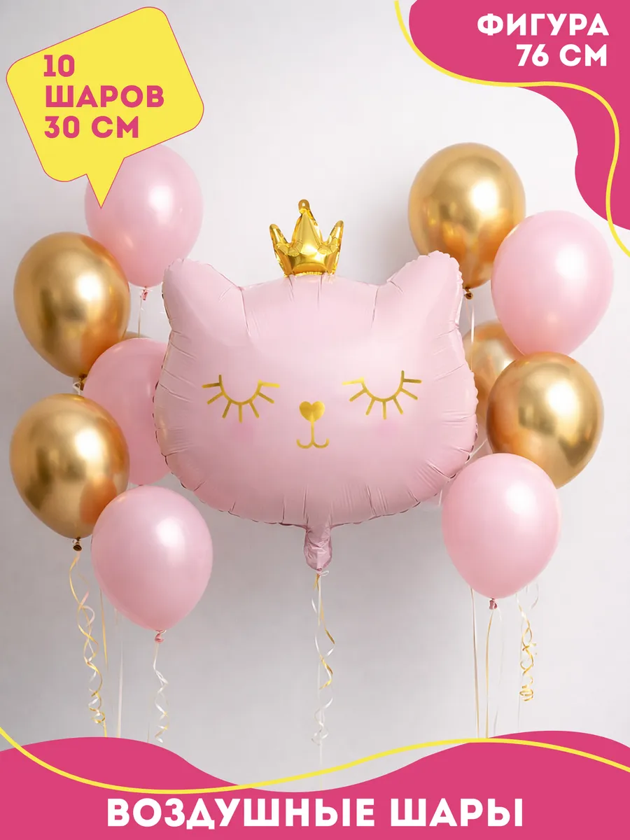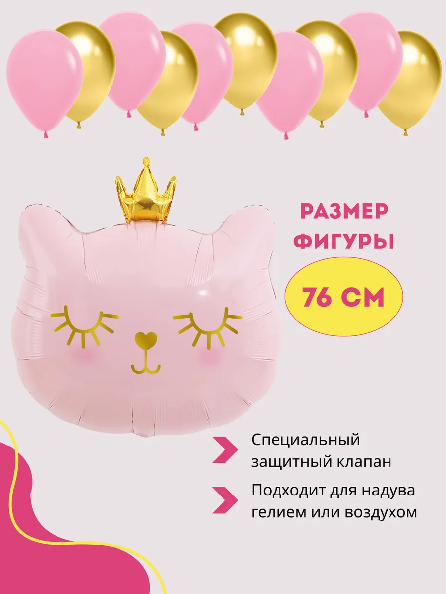 Набор воздушных шаров Котенок принцесса розовый 76 см. Прекрасно подойдет для оформления любого детского праздника или фотозоны. Шарики для детей - непременный атрибут каждого праздника! Яркие и разноцветные однотонные шарики на др превосходно подойдут для декорирования и украшения помещения на любое торжество. Воздушные шарики и аксессуары - это отличный подарок для мальчика и для девочки, набор для дня рождения или как подарки в детский сад. Шары - отличный подарочный набор папе или маме на день рождения. Плотные латексные шары идеально подходят для надувания как гелием (специальный газ для шаров), с помощью баллона, так и обычным воздухом с помощью насоса для шаров или без использования дополнительных средств. Можно украсить фотозону на день рождения, Новый год, 1 сентября, последний звонок, выпускной в садике и школе, 23 февраля, день святого Валентина, выписку из роддома, вечеринку, любой другой праздник или юбилей. Сделать арку на свадьбу для молодоженов или украсить детский праздник. Можно использовать как подарки женщинам для праздника 8 марта или как набор на день рождения подруге или другу, брату или сестре, мужу или жене. Шарики принесут массу положительных эмоций как детям, так и взрослым, создадут праздничное настроение и станут примечательным атрибутом торжества. Изготовлены из плотного натурального латекса, не лопаются, не имеют запаха и хорошо раздуваются. Абсолютно гипоаллергенны и безопасны как для взрослых, так и для детей. Набор шариков станет отличным сюрпризом для поздравления с Днем Рождения (Happy Birthday) или просто как сюрприз без повода. Поставляются в не надутом виде. Также в дополнение к шарам рекомендуем приобрести товары для праздника. Упаковка воздушных шаров изготовлена из полиэтилена. Заходите в наш магазин Happy Fiesta, у нас много различных шаров на любой вкус и проходят распродажи, акции, скидки! Переходите в личный кабинет и добавляйте наш бренд в избранное, чтобы не пропустить новинки!