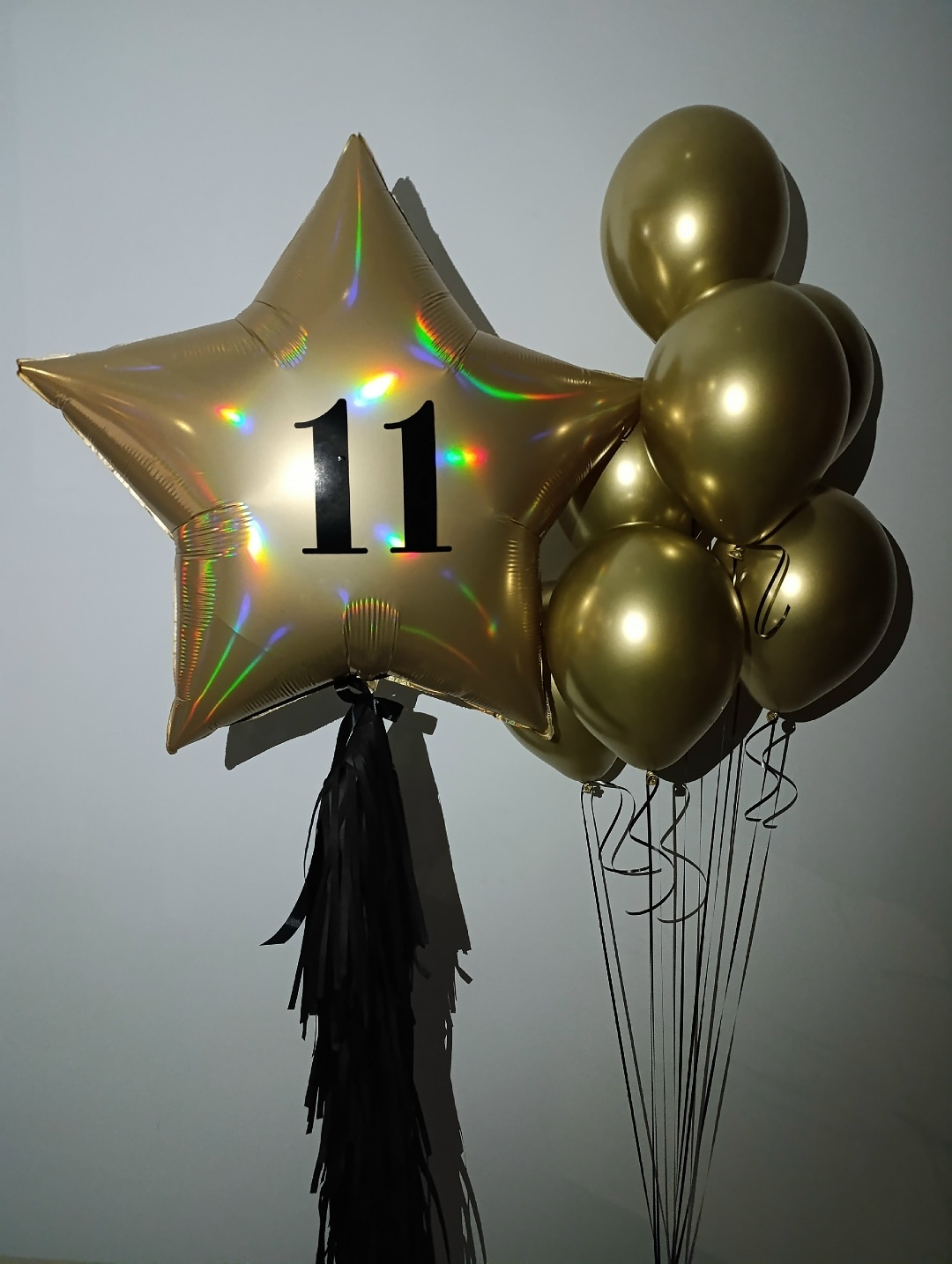 Фонтан из 7 шаров хром Звезда 36" с надписью и декоративным хвостом